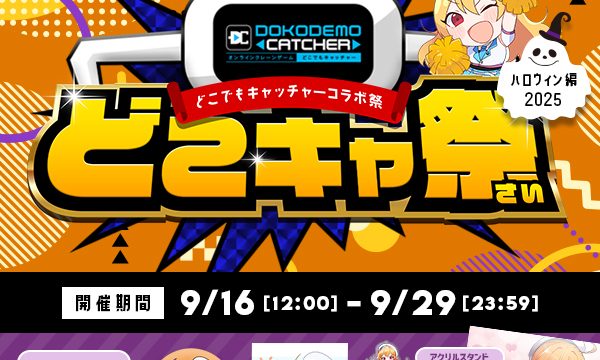 コラボ情報 どこでもキャッチャーコラボ祭 ハロウィン編-2025-後編 2025年9月23日 kishi_dc7 https://dc7.co.jp/wp-content/uploads/2020/09/cropped-新ロゴマークのみ背景白系.png オンラインクレーンゲーム・オンラインくじするなら株式会社DC7